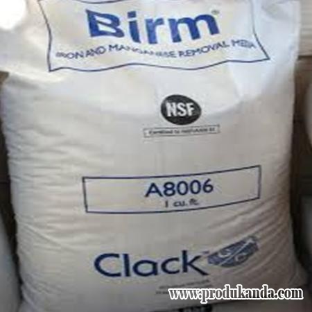 Birm adalah media yang efektif dan ekonomis untuk mengurangi zat besi dan mangan terlarut yang terdapat pada air. Birm dapat digunakan pada sitem filtrasi gravitasi atau sistem pengolahan air bertekanan. Birm sebagai katalis larut untuk meningkatkan reaksi antara oksigen terlarut (DO) dan senyawa besi. Birm juga bertindak sebagai katalisator antara oksigen dan senyawa besi larut, meningkatkan reaksi oksidasi besi dan menghasilkan hidroksida besi yang membuat partikel besi dapat dengan mudah disaring. Birm merupakan media filter yang sangat baik dan mudah dibersihkan pada saat backwash untuk menghapus pengendapan. PT Guna Indotirta menawarkan media filter Birm dari Clack-US dengan kemasan 28,3 liter per bag.
